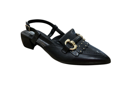 MJUS black leather slingback with fringing and snaffle detail
