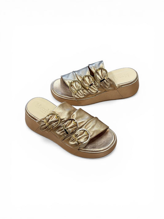 Marco Moreo metallic gold leather platform wedge slingback sandal