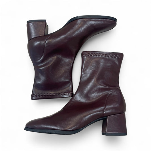 Miss Elastic chocolate brown patent vegan leather stretch knee high boots