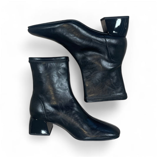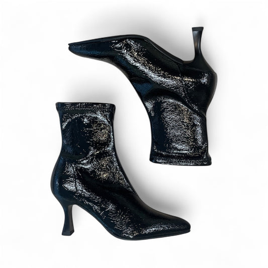 Miss Elastic chocolate brown patent vegan leather stretch knee high boots
