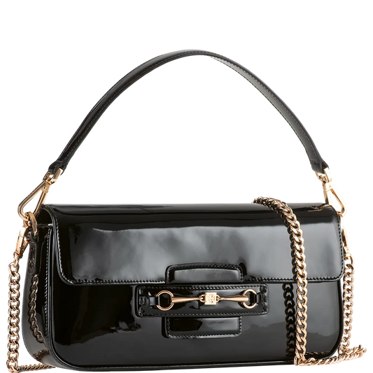 Hōgl black patent leather baguette handbag