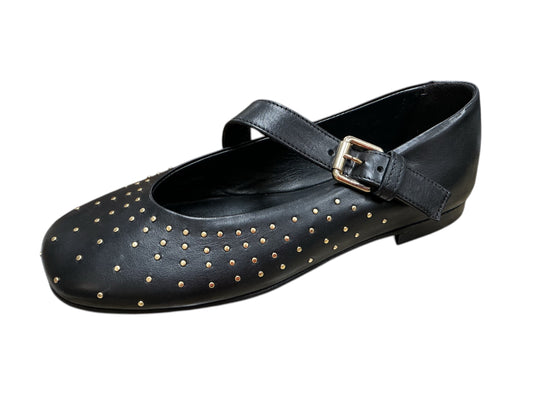 MJUS black leather Mary Jane ballerina pump with gold studs