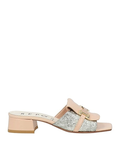 Repo silver and pink leather mules