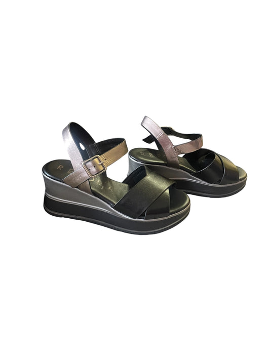 Repo black , bronze and silver platform wedge sandals