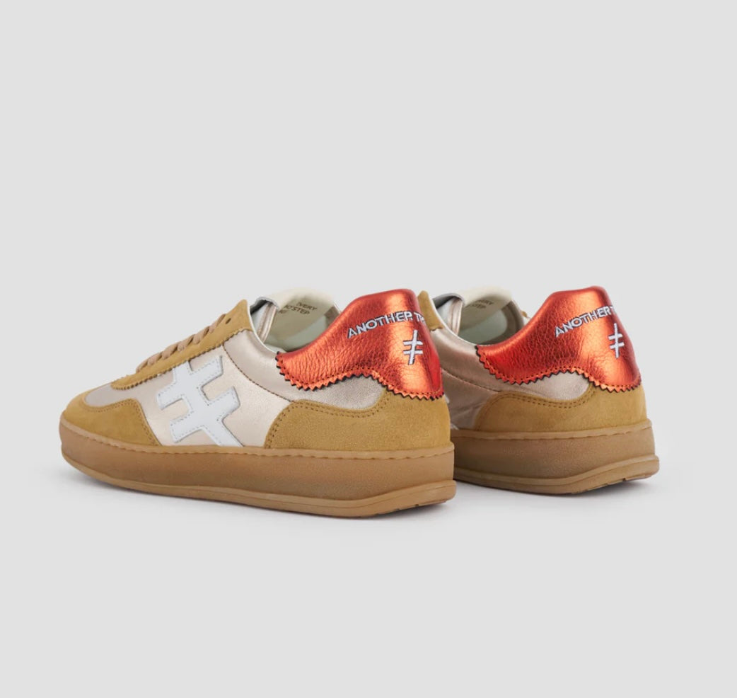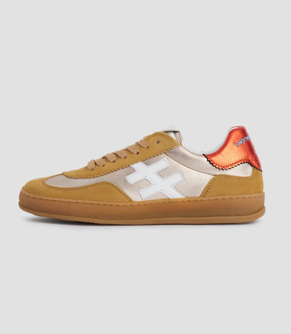 Camel suede gold and orange leather