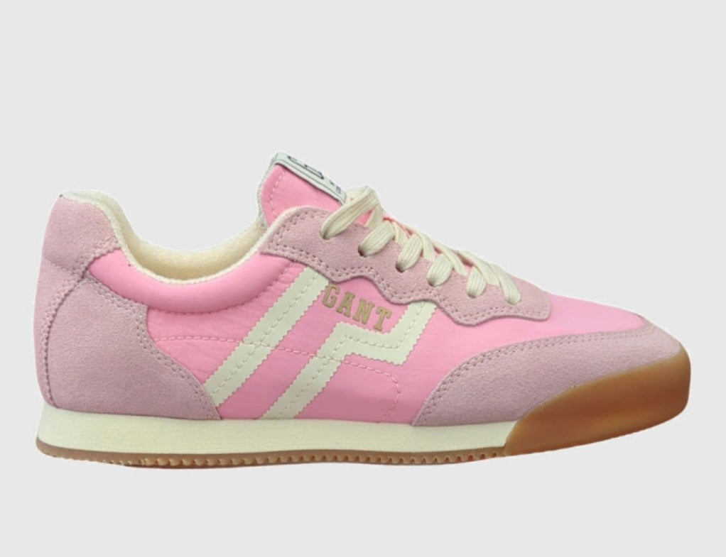 Experience the ultimate combination of fashion and comfort with these Gant pink and white suede and nylon sneakers! Made with high quality suede and nylon material, these sneakers are both stylish and durable. Embrace the retro style with the classic white laces and rubber sole. Available in blue as well. Upgrade your shoe game with Gant!
