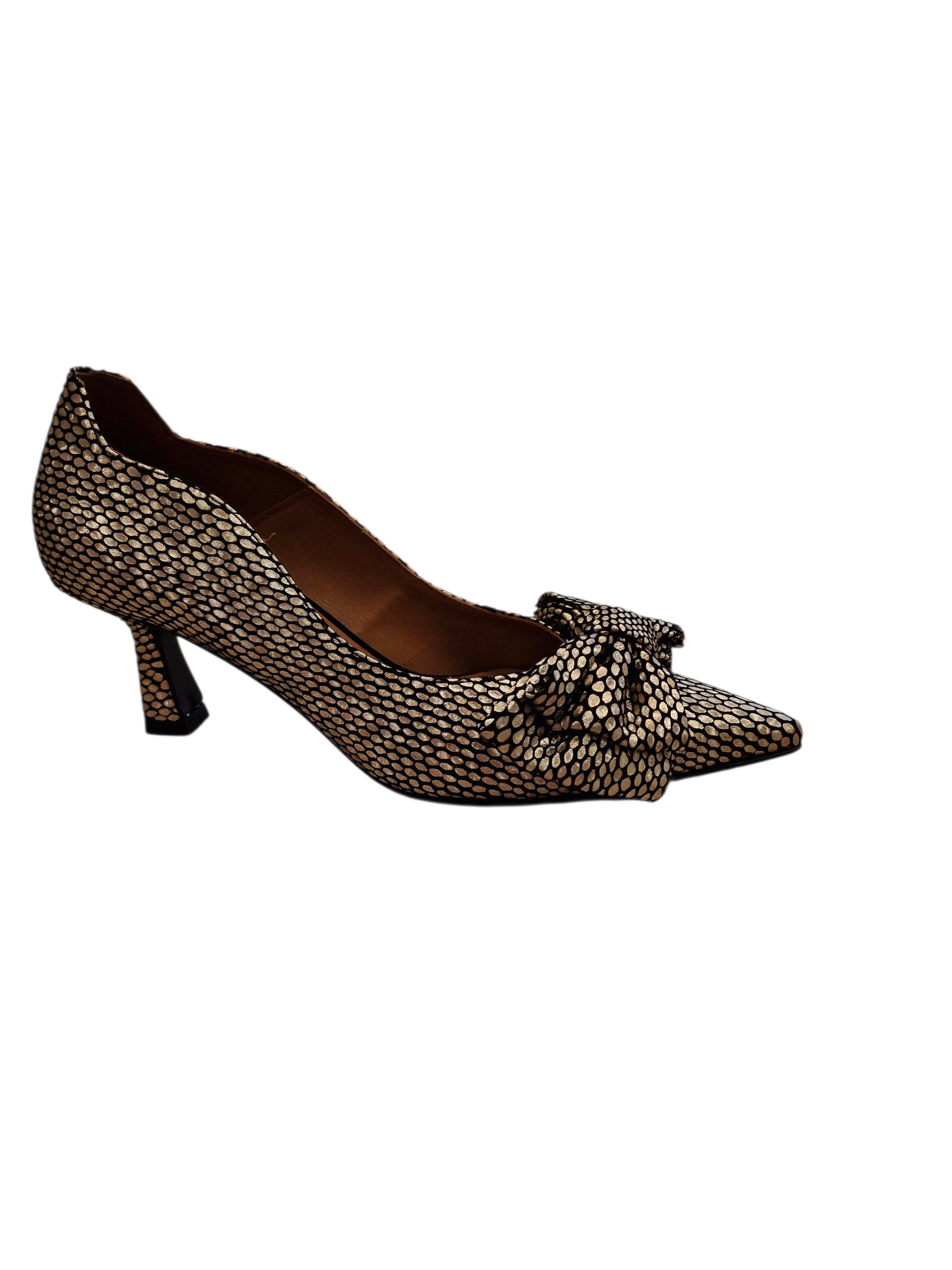 Marian gold & black flared heel