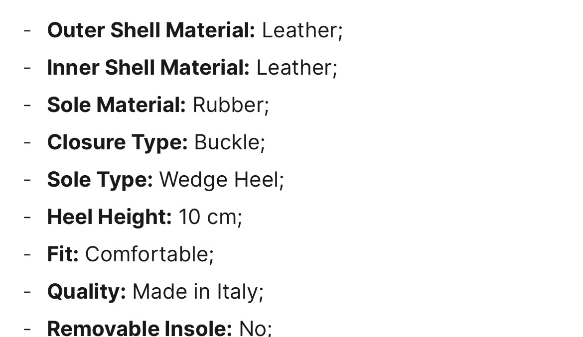 Experience the luxurious and high-quality leather material of these Italian-made wedge sandals, with a stunning heel height of 10cm! Elevate your style and comfort with this essential addition to your wardrobe.