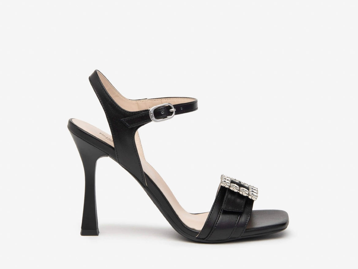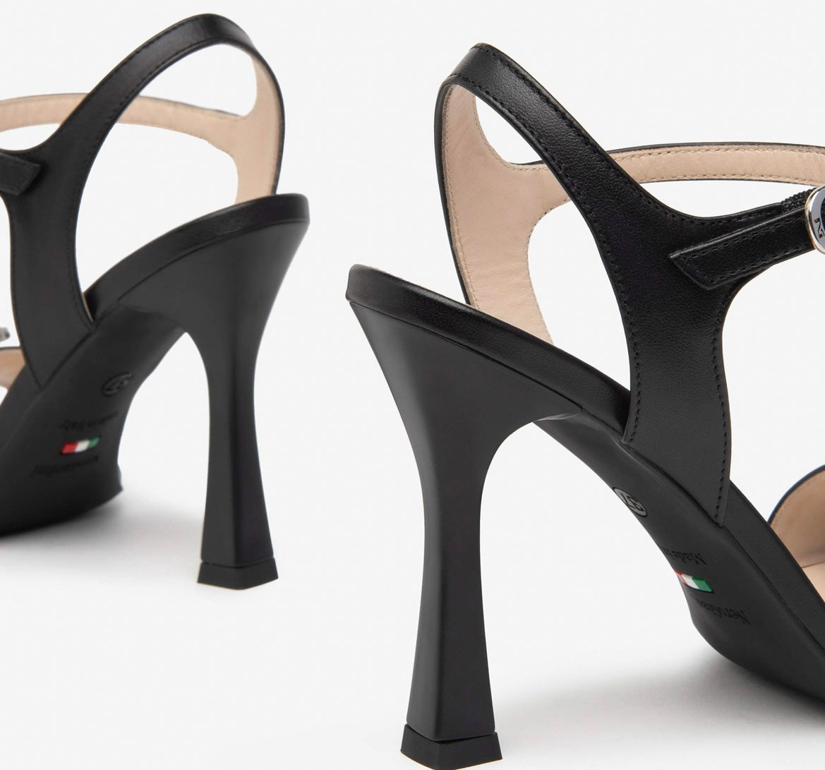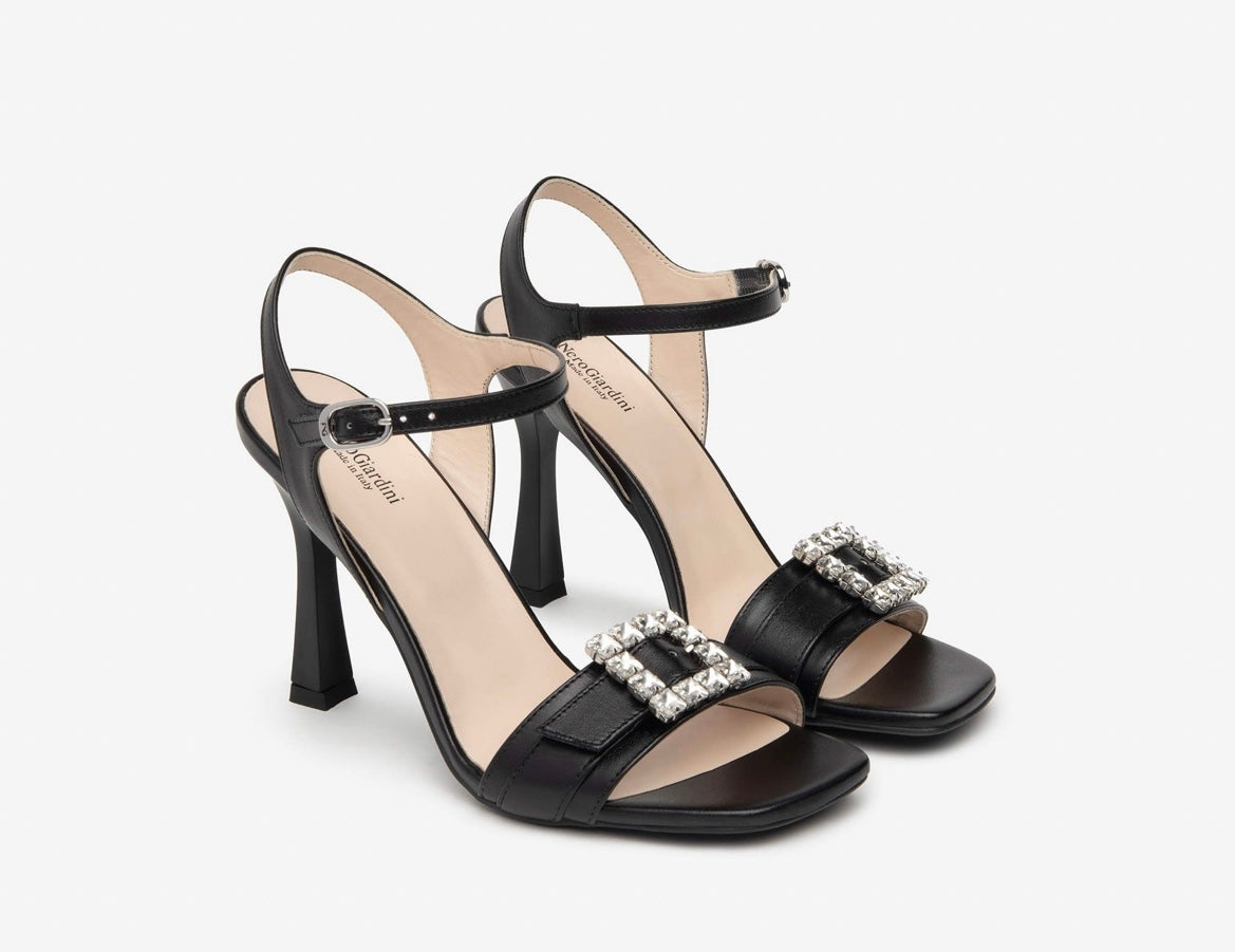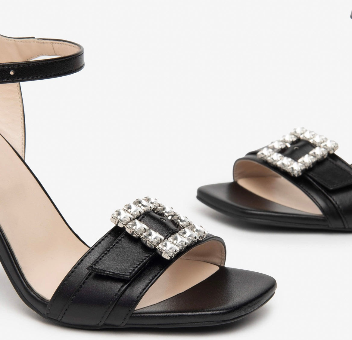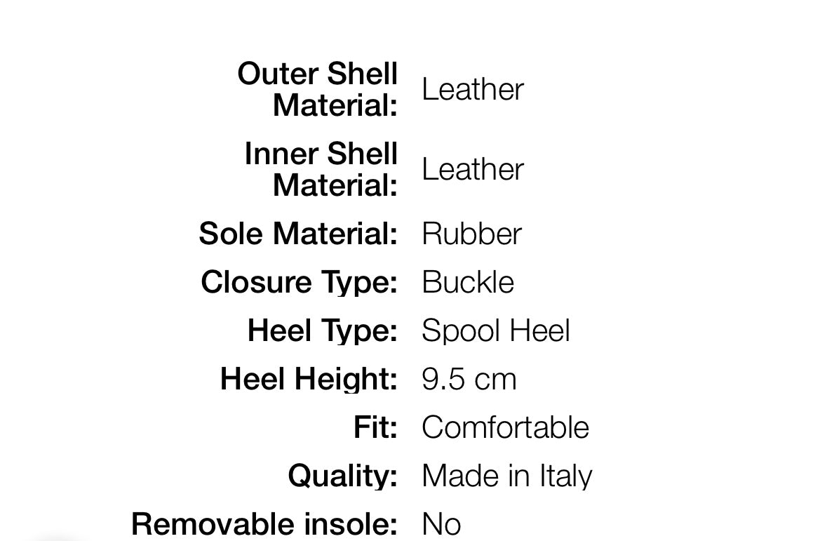 Crafted from luxurious leather with a diamond buckle closure, these sandals boast a spool heel measuring 9.5 cm for a comfortable and stylish fit. Made in Italy with the utmost care and attention, these sandals exude elegance and exclusivity.