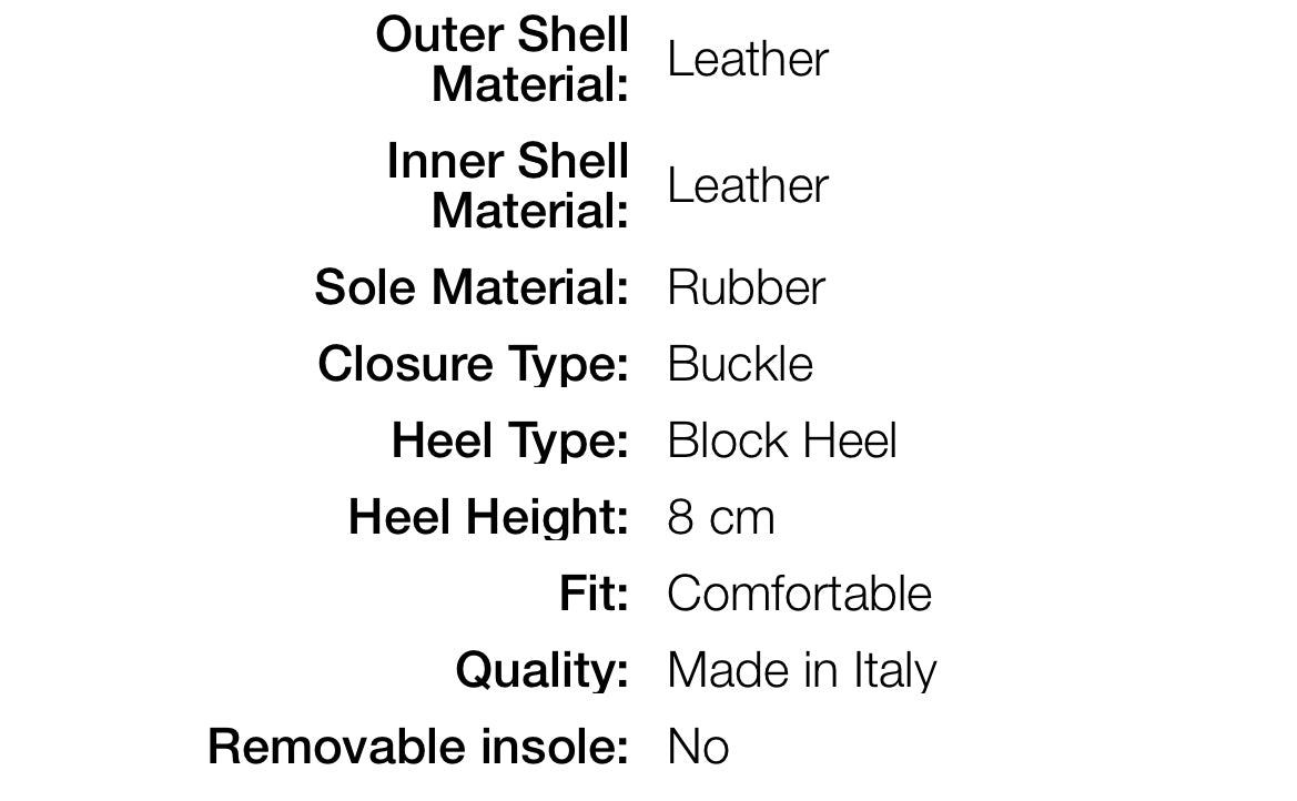Crafted from luxurious leather, secured with a sleek buckle closure, and featuring a fashionable block heel with a comfortable height of 8 cm, these sandals provide both style and comfort. Also Available in black and cream, they are the epitome of elegance and sophistication.