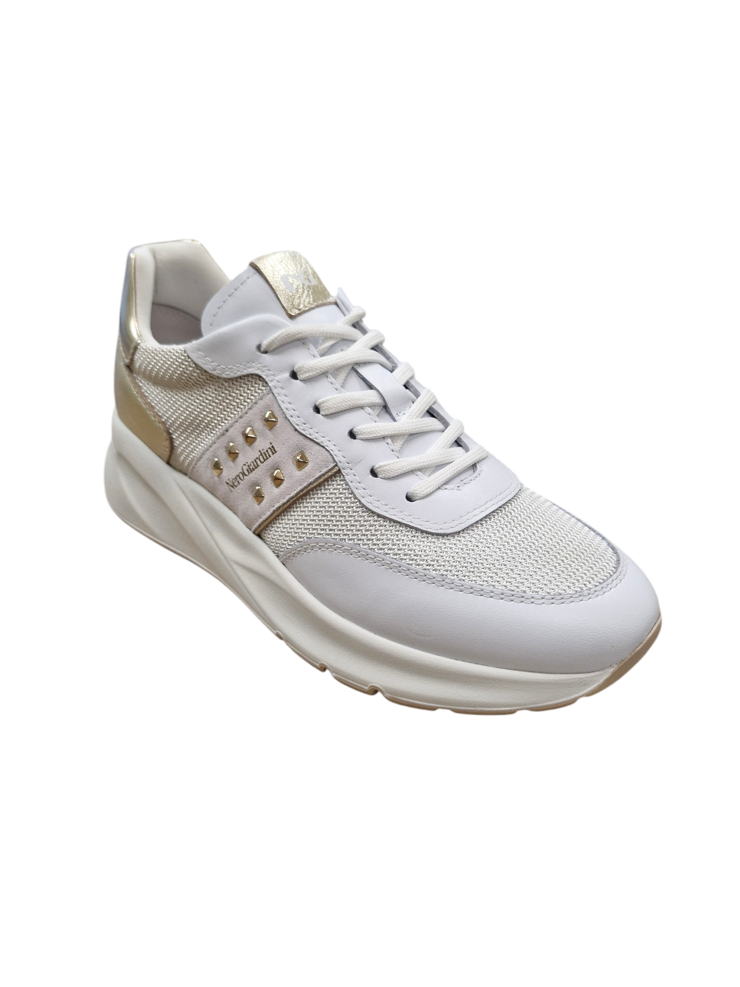 Upgrade your sneaker game with the NeroGiardini white wedge sneaker. Crafted with Nerogiardini's signature quality and style, this wedge sneaker offers a unique and elevated look. The wedge heel adds height for a flattering silhouette, while the white color adds versatility to any outfit. Step into comfort and fashion with this must-have sneaker.