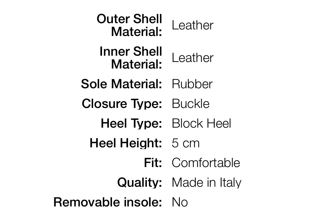 Crafted from luxurious leather and adorned with a stylish buckle closure, these shoes feature a 5cm block heel for a comfortable and fashionable fit. Expertly made in Italy, they exude an air of sophistication and exclusivity.